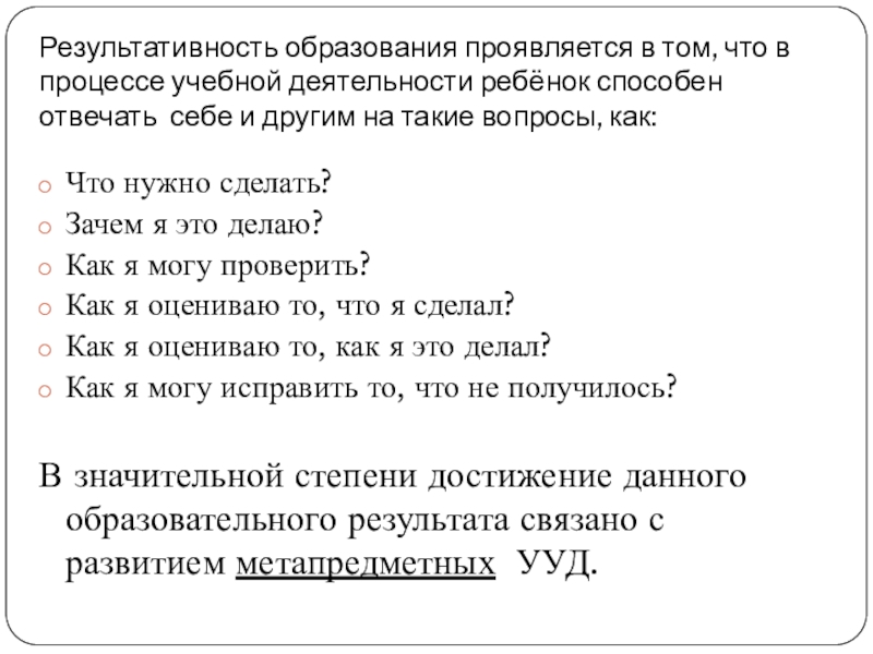 В значительной степени достижение данного образовательного результата связано с развитием метапредметных УУД.