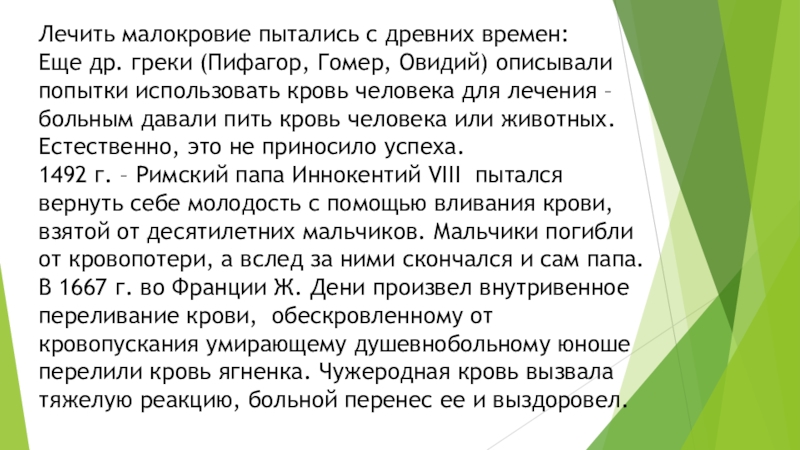 Слайд 29Лечить малокровие пытались с древних времен: