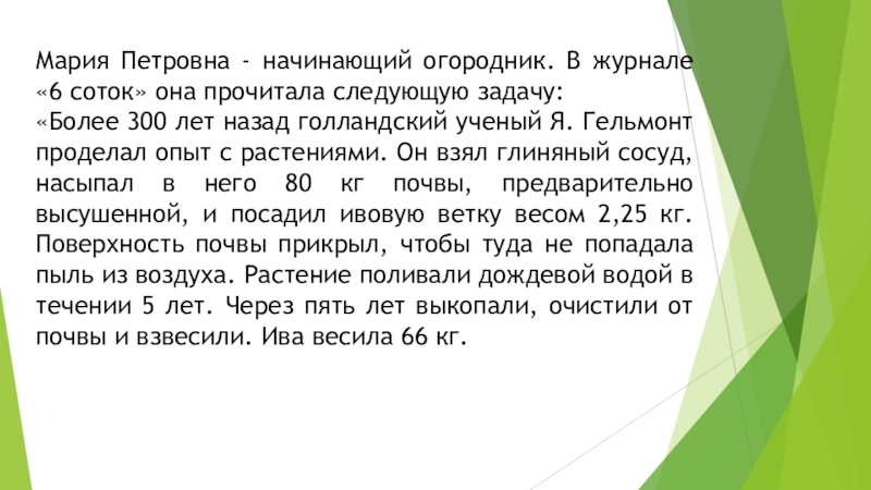 Слайд 21Мария Петровна - начинающий огородник. В журнале «6 соток» она прочитала