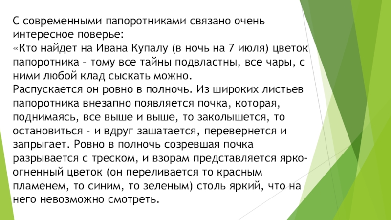 (в ночь на 7 июля) цветок папоротника – тому все тайны подвластны, все чары, с ними любой клад сыскать можно.