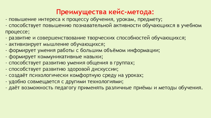 Слайд 43Преимущества кейс-метода: