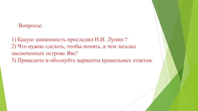 1) Какую зависимость проследил Н.И. Лунин ?