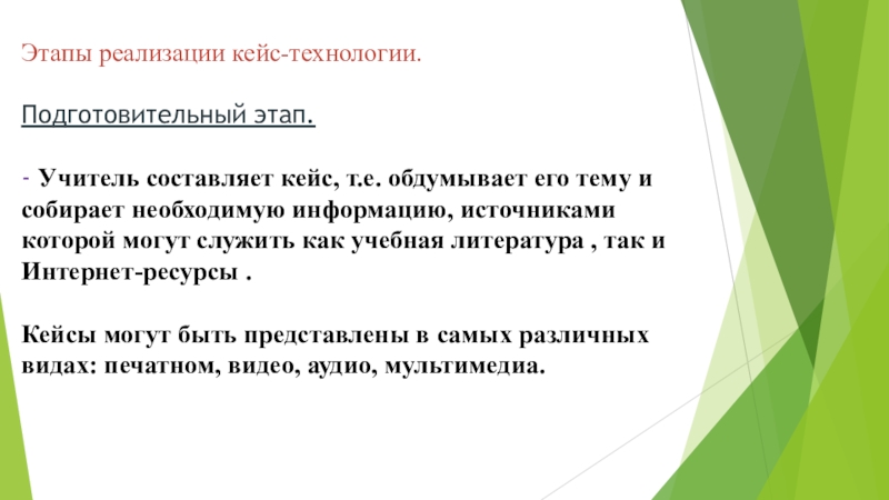 - Учитель составляет кейс, т.е. обдумывает его