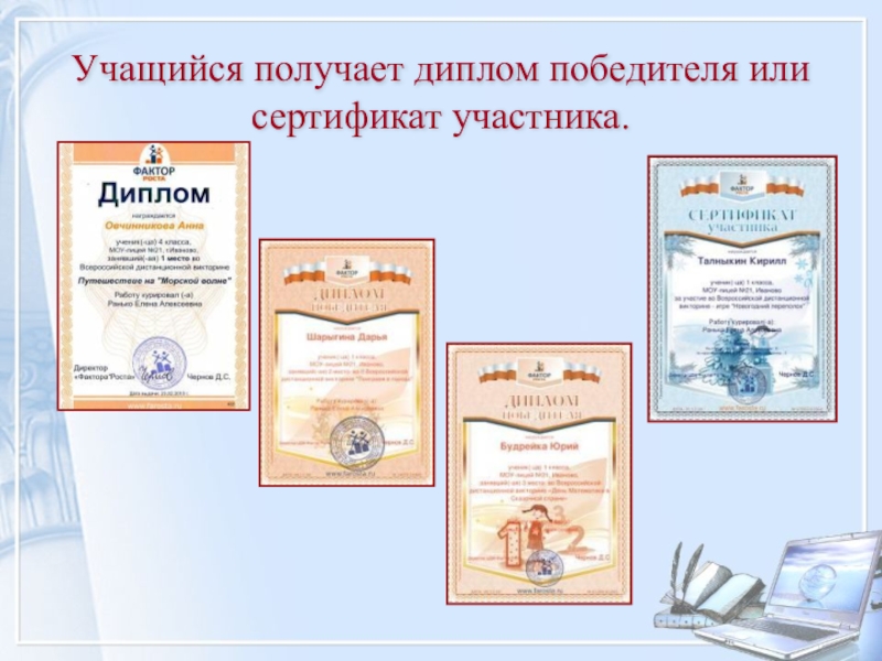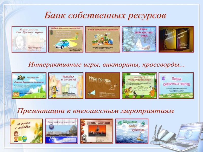 Это сайт презентаций, где можно хранить и обмениваться своими презентациями, докладами, проектами, шаблонами в формате PowerPoint с другими пользователями. Мы помогаем школьникам, студентам, учителям, преподавателям хранить и обмениваться учебными материалами.