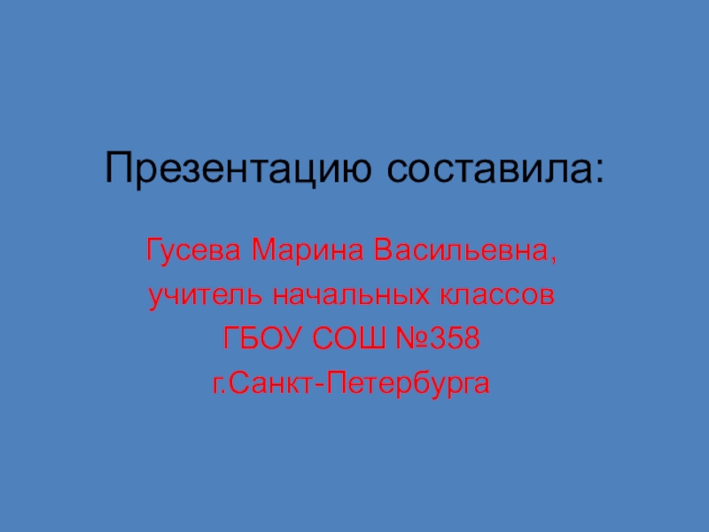 Презентацию составила:Гусева Марина Васильевна,учитель начальных классовГБОУ СОШ №358г.Санкт-Петербурга