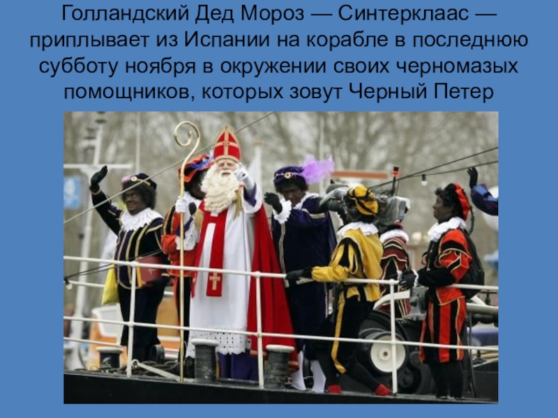 Слайд 4Голландский Дед Мороз — Синтерклаас — приплывает из Испании на корабле