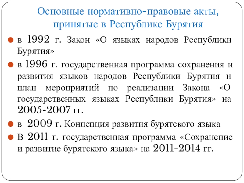 Слайд 8Основные нормативно-правовые акты, принятые в Республике Бурятия