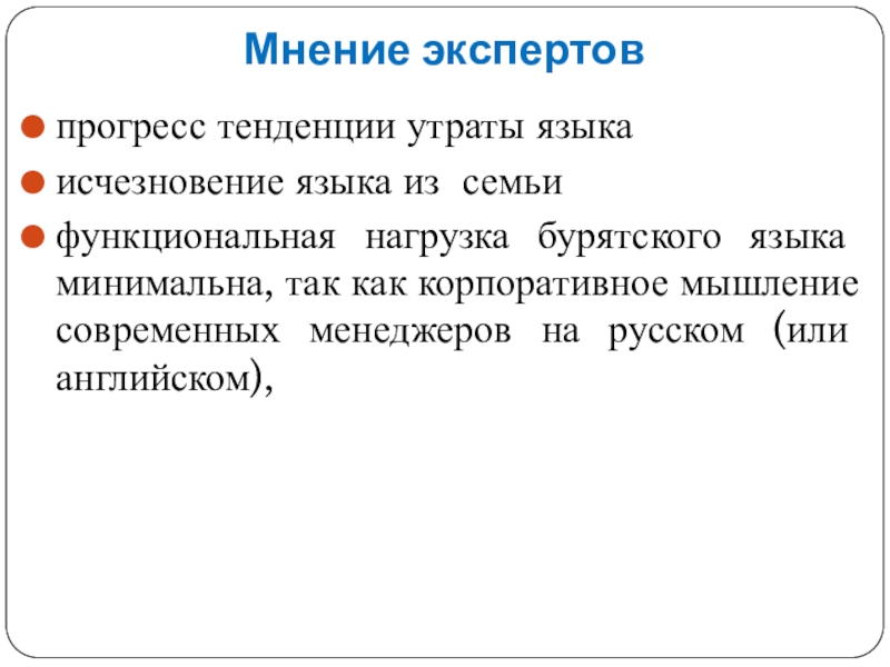 Сужение сферы функционирования бурятского языка почти до критической точки.