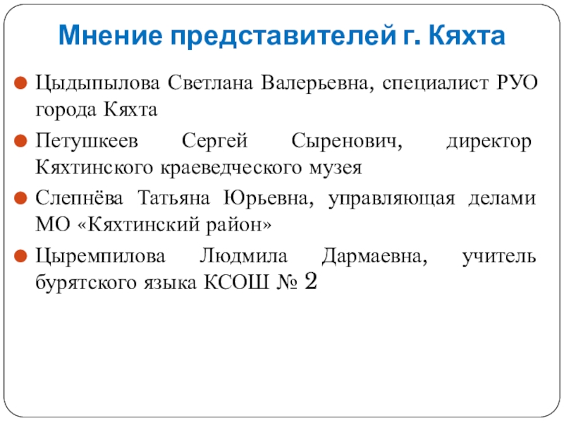 Слайд 19Мнение представителей г. Кяхта