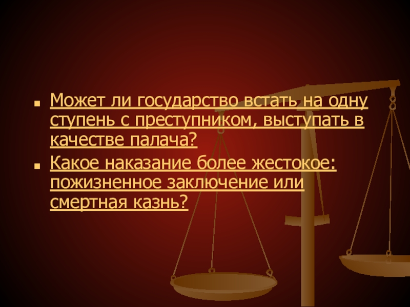 Слайд 13Может ли государство встать на одну ступень с преступником, выступать в