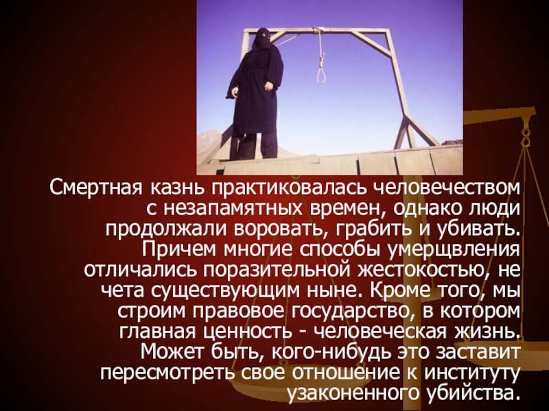 Слайд 24Смертная казнь практиковалась человечеством с незапамятных времен, однако люди продолжали воровать,