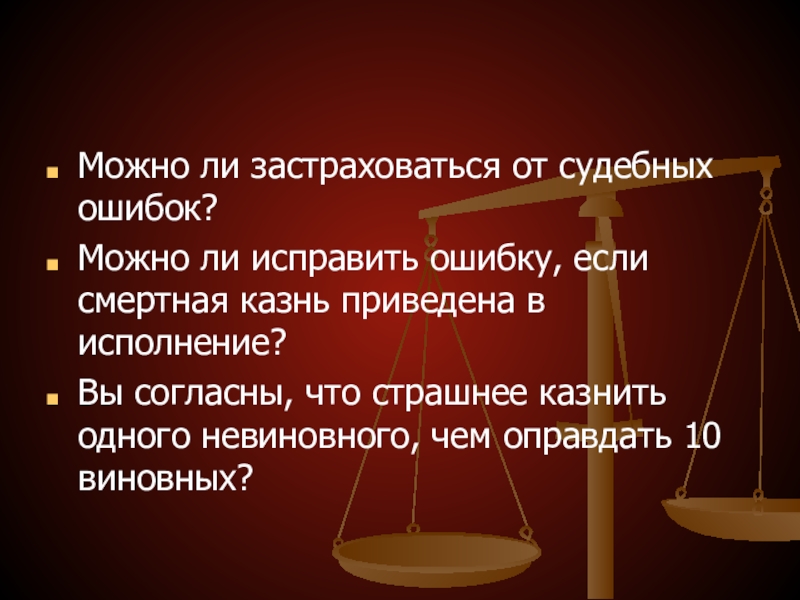 Вы согласны, что страшнее казнить одного невиновного, чем оправдать 10 виновных?