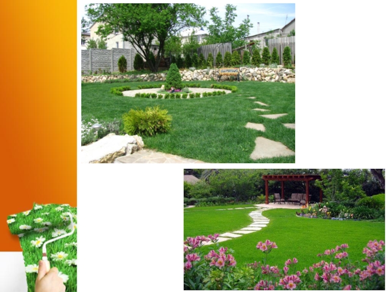 СЛАЙД 13: И результатом кропотливой работы специалистов по садово-парковому и ландшафтному строительству, территория становится полностью благоустроенная, радующая взгляд своего владельца и своего «создателя».