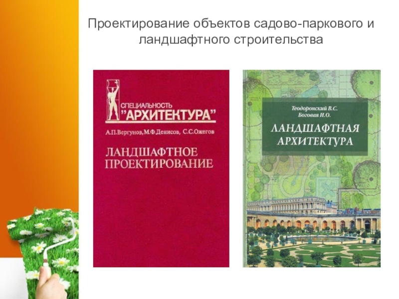 Слайд 2Проектирование объектов садово-паркового и ландшафтного строительства