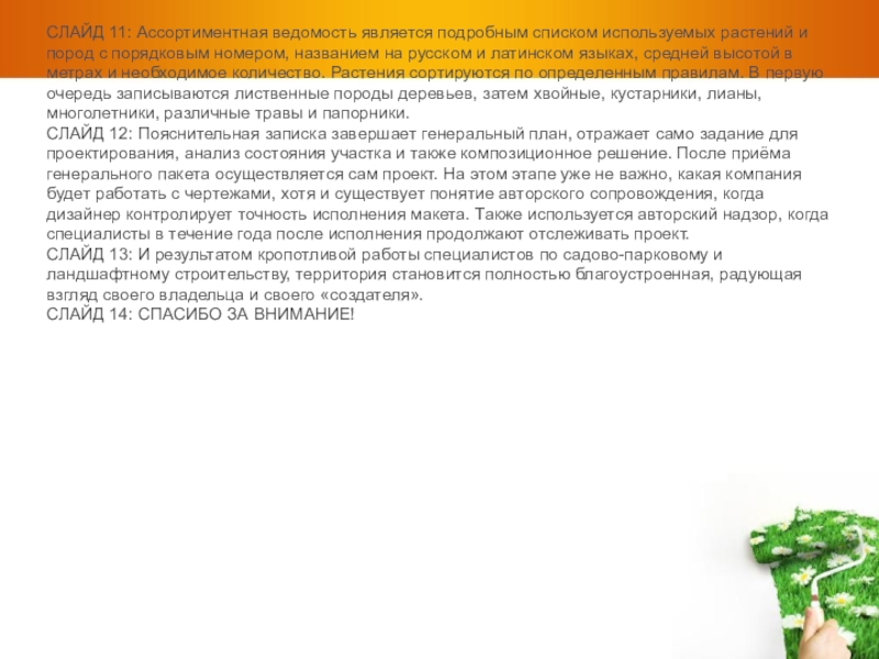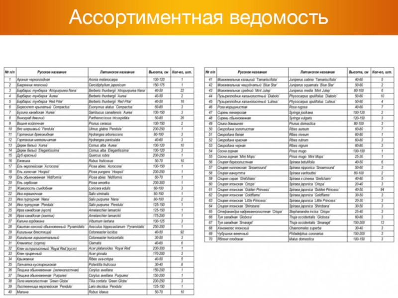 Слайд 17СЛАЙД 11: Ассортиментная ведомость является подробным списком используемых растений и пород