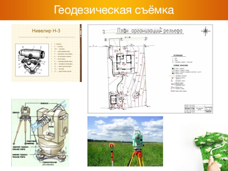 СЛАЙД 5: Геодезическая съемка участка необходима как воздух. Вы можете без нее обойтись только тогда, когда “озеленяете” клумбу или небольшой участок. В таком случае, самостоятельно сделаете обмеры участка и нанесете их на план. В других случаях, геодезия нужна для того, чтобы иметь информацию о границах участка согласно документам землеотвода, высотных отметок рельефа и основных сооружений, располагающихся на нем, а также понимать их размеры и местоположение. В процессе проектирования, ландшафтный архитектор опирается на эти данные для решения одной из главных задач — отвода ливневых и талых вод с участка, размещения новых сооружений — площадок, тротуаров и т.д.
