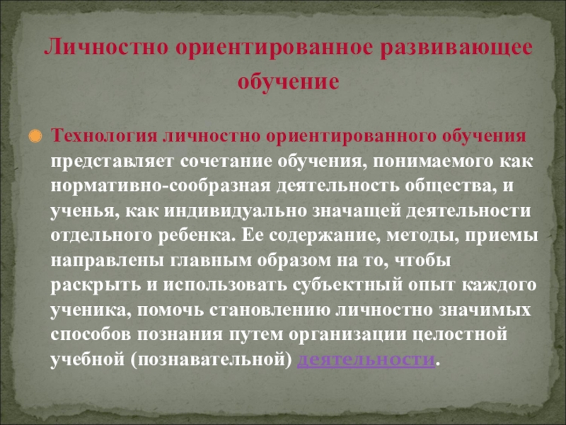 Формирование компетенции на основе деятельностных и личностно-ориентированных технологий
