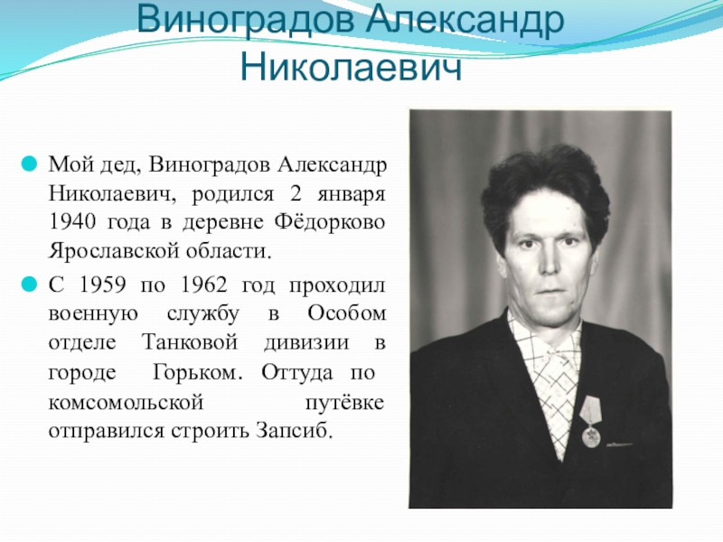 Мой дед, Виноградов Александр Николаевич, родился 2 января 1940