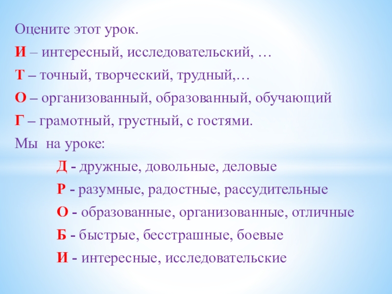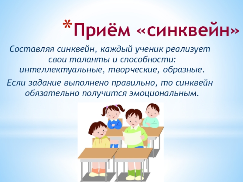Составляя синквейн, каждый ученик реализует свои таланты и способности: интеллектуальные,