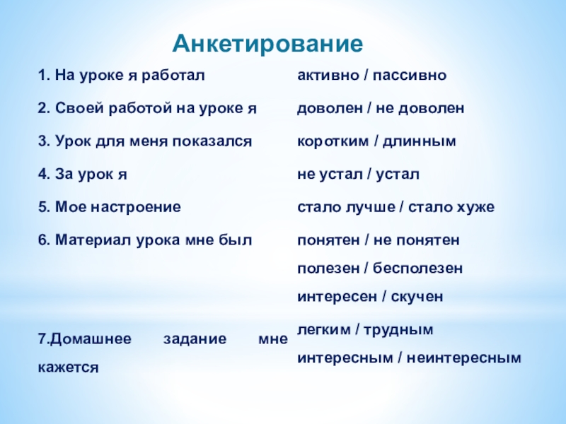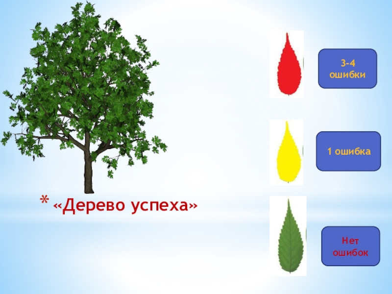 Учащиеся записывают свое мнение об уроке на бумаге в форме листьев дерева, можно предложить ряд вопросов, затем прикрепляют их на заготовку дерева на плакате.