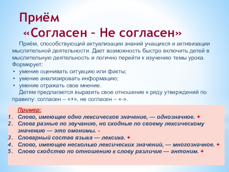 и активизации мыслительной деятельности. Дает возможность быстро включить детей в мыслительную деятельность и логично перейти к изучению темы урока.