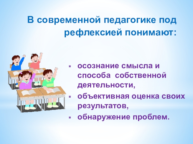 Слайд 2Рефлексия – это размышление о своём психическом состоянии, склонность анализировать свои