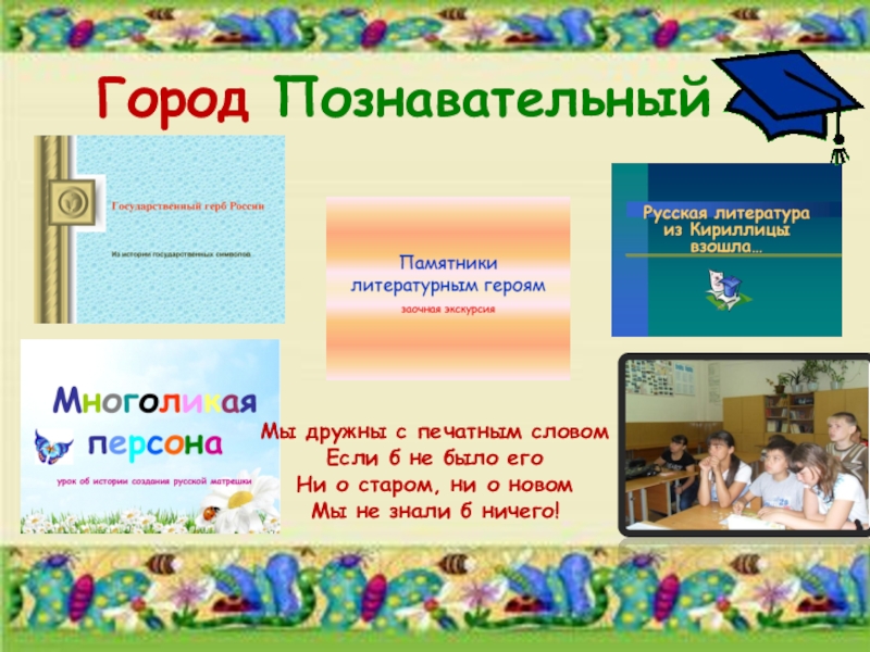 Это сайт презентаций, где можно хранить и обмениваться своими презентациями, докладами, проектами, шаблонами в формате PowerPoint с другими пользователями. Мы помогаем школьникам, студентам, учителям, преподавателям хранить и обмениваться учебными материалами.