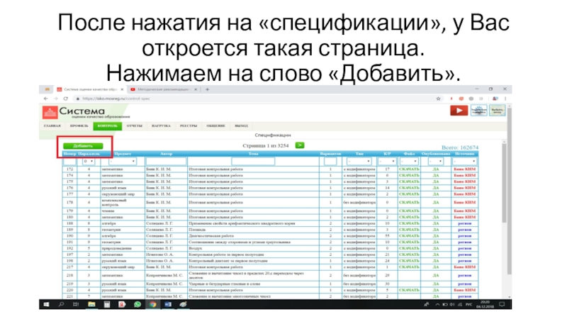 Слайд 3После нажатия на «спецификации», у Вас откроется такая страница. Нажимаем на