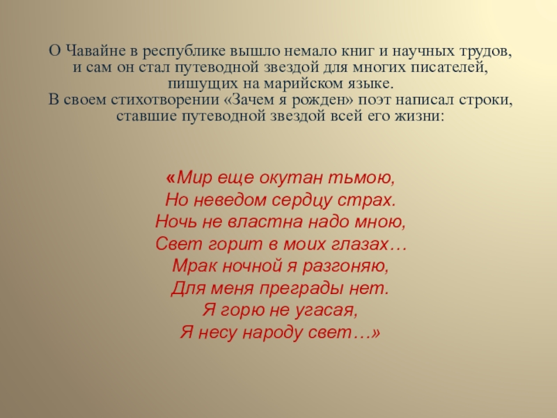 Слайд 18С. Чавайн явился первым марийским поэтом, заложившим основу для развития марийской