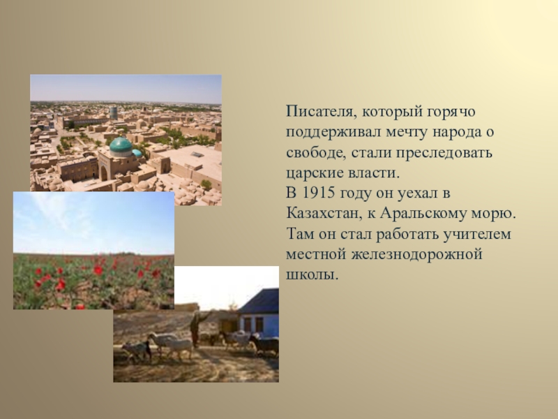 В 1915 году он уехал в Казахстан, к Аральскому морю.