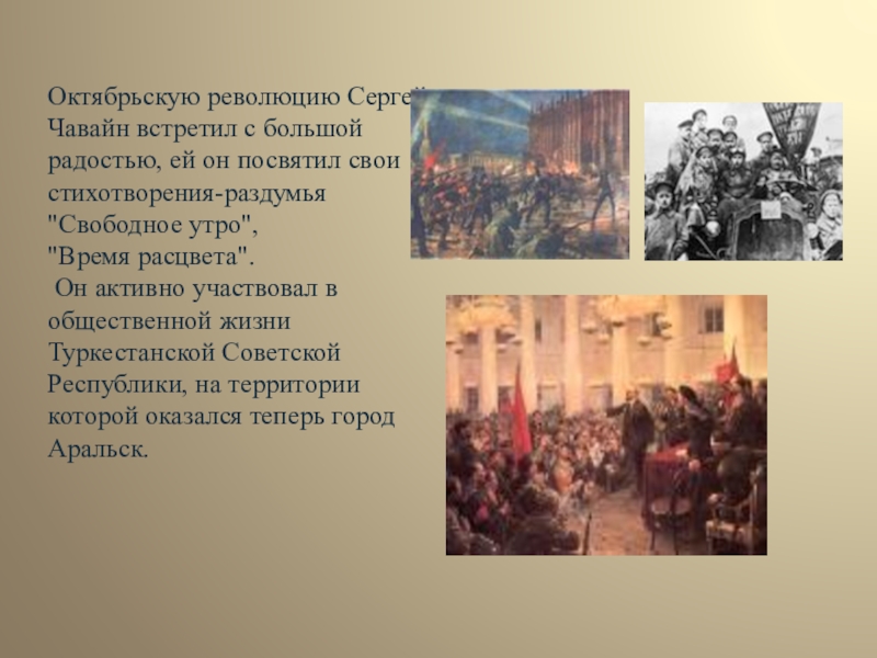 Слайд 15Октябрьскую революцию Сергей Чавайн встретил с большой радостью, ей он посвятил