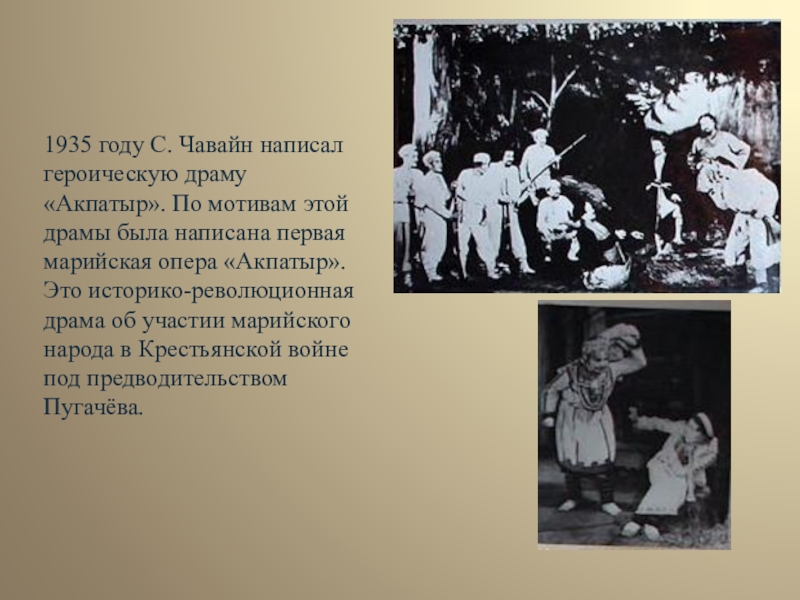 Слайд 19Драматургическое творчество С.Г.Чавайна развивалось в период зарождения Марийского театрального искусства в