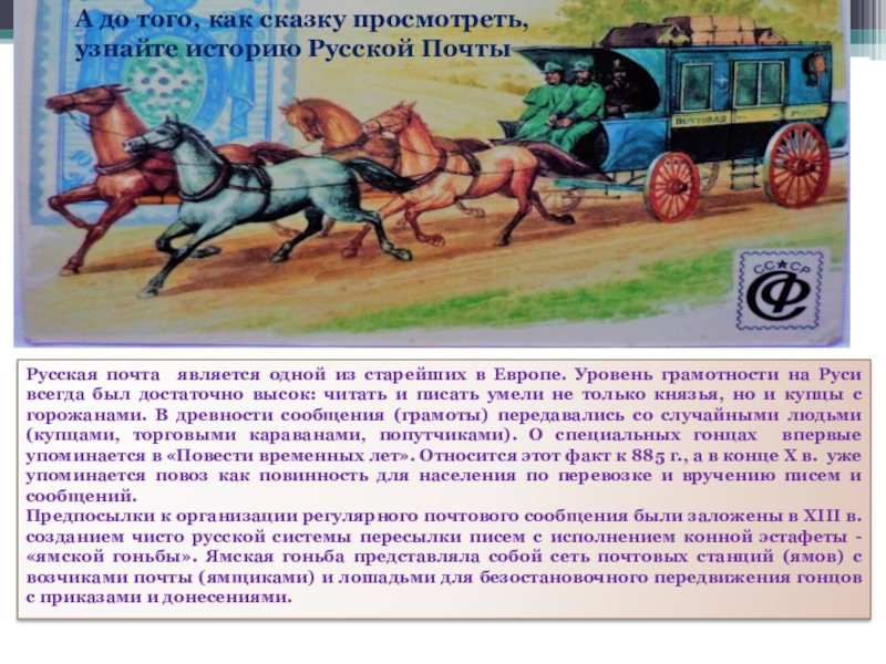А до того, как сказку просмотреть, узнайте историю Русской Почты