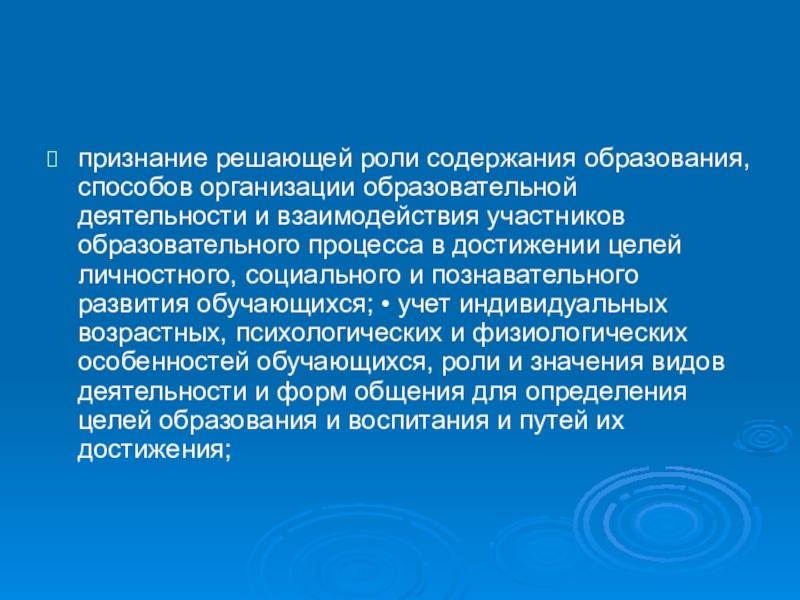 признание решающей роли содержания образования, способов организации образовательной деятельности и взаимодействия