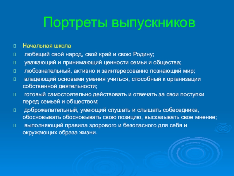 социально активный, уважающий закон и правопорядок, соизмеряющий свои поступки с нравственными ценностями, осознающий свои обязанности перед семьей, обществом, Отечеством;