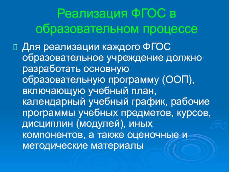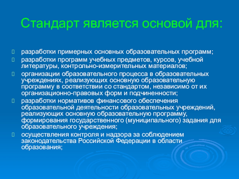 организации образовательного процесса в образовательных учреждениях, реализующих основную образовательную программу в соответствии со стандартом, независимо от их организационно-правовых форм и подчиненности;