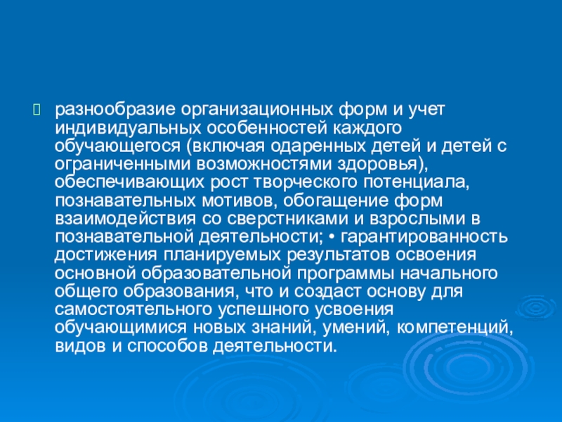 разнообразие организационных форм и учет индивидуальных особенностей каждого обучающегося (включая одаренных