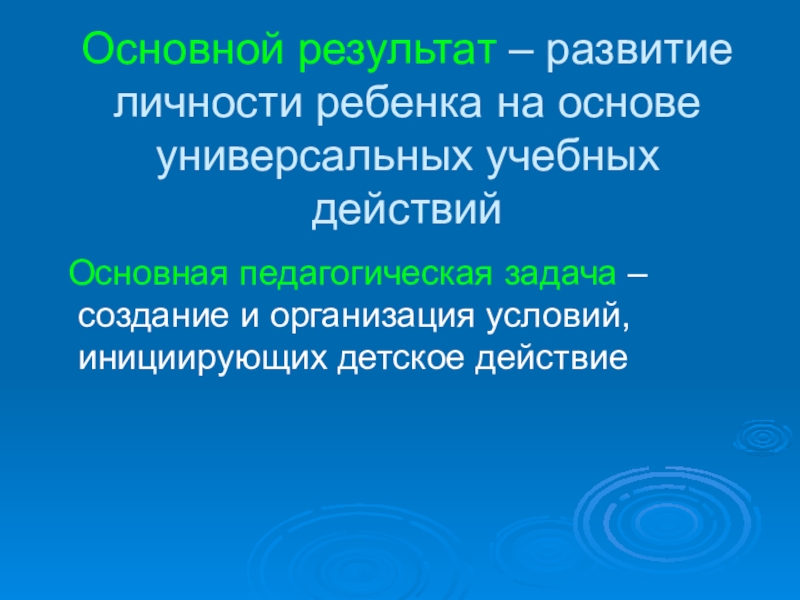 Основной результат – развитие личности ребенка на основе универсальных учебных действий