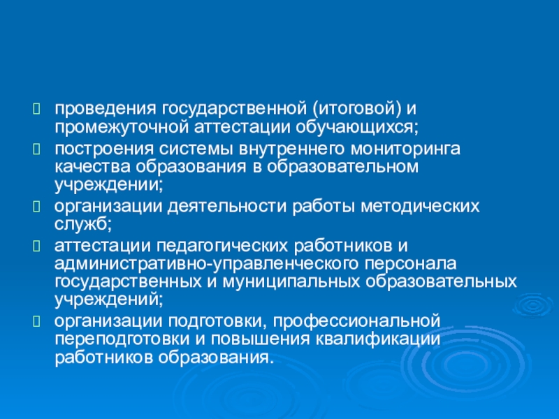 аттестации педагогических работников и административно-управленческого персонала государственных и муниципальных образовательных учреждений;
