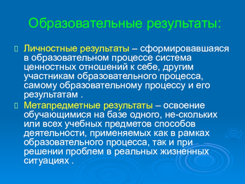 Метапредметные результаты – освоение обучающимися на базе одного, не-скольких или всех учебных предметов способов деятельности, применяемых как в рамках образовательного процесса, так и при решении проблем в реальных жизненных ситуациях .