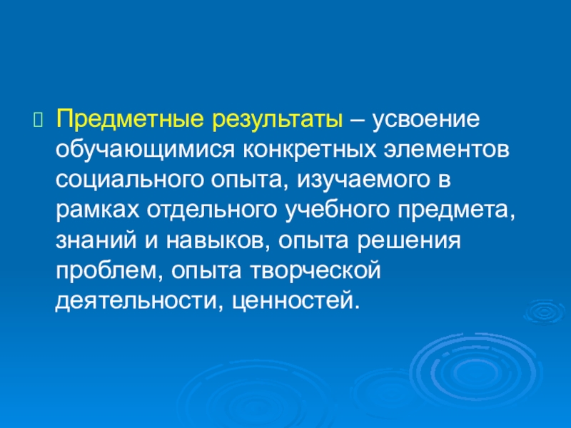 Предметные результаты – усвоение обучающимися конкретных элементов социального опыта, изучаемого в