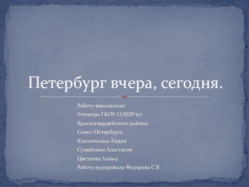 Петербург вчера, сегодня.