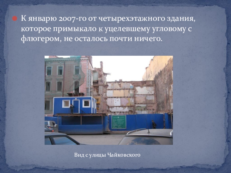 Слайд 10К январю 2007-го от четырехэтажного здания, которое примыкало к уцелевшему угловому