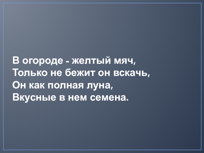 Слайд 2В огороде - желтый мяч, Только не бежит он вскачь, Он как полная