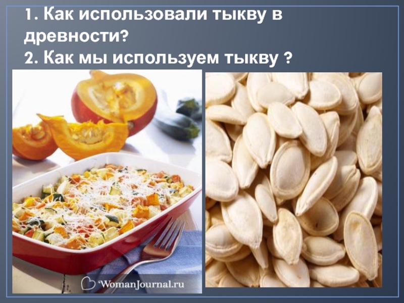 Слайд 101. Как использовали тыкву в древности? 2. Как мы используем тыкву ?