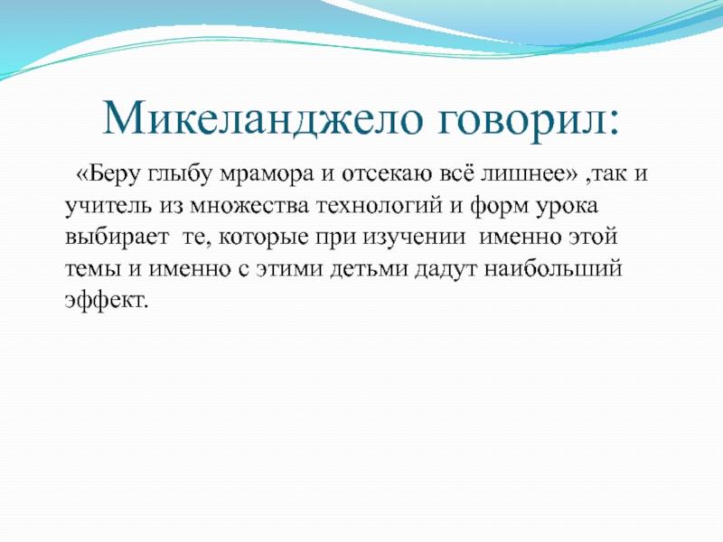 Слайд 25Микеланджело говорил: