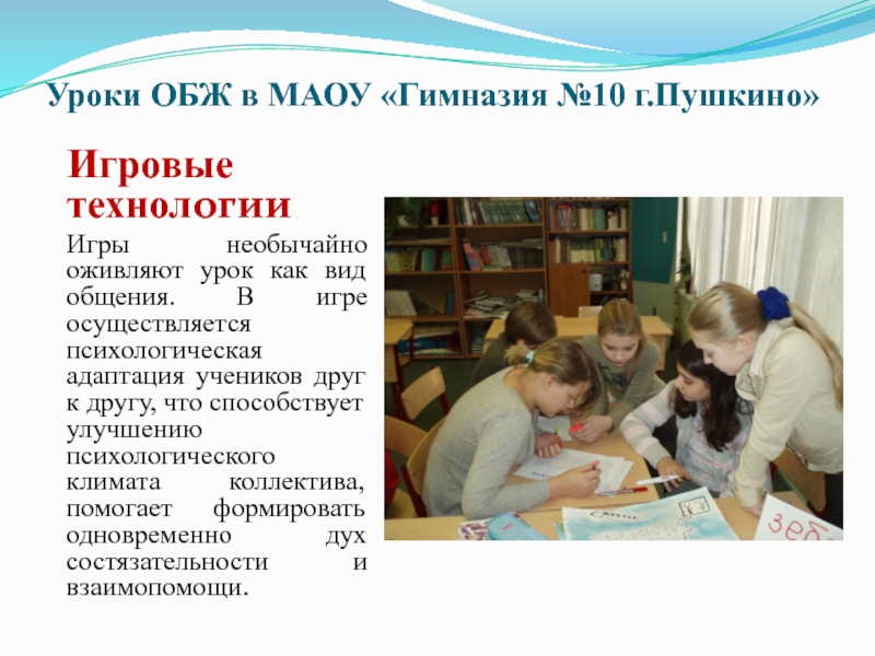 Слайд 13Уроки ОБЖ в МАОУ «Гимназия №10 г.Пушкино»