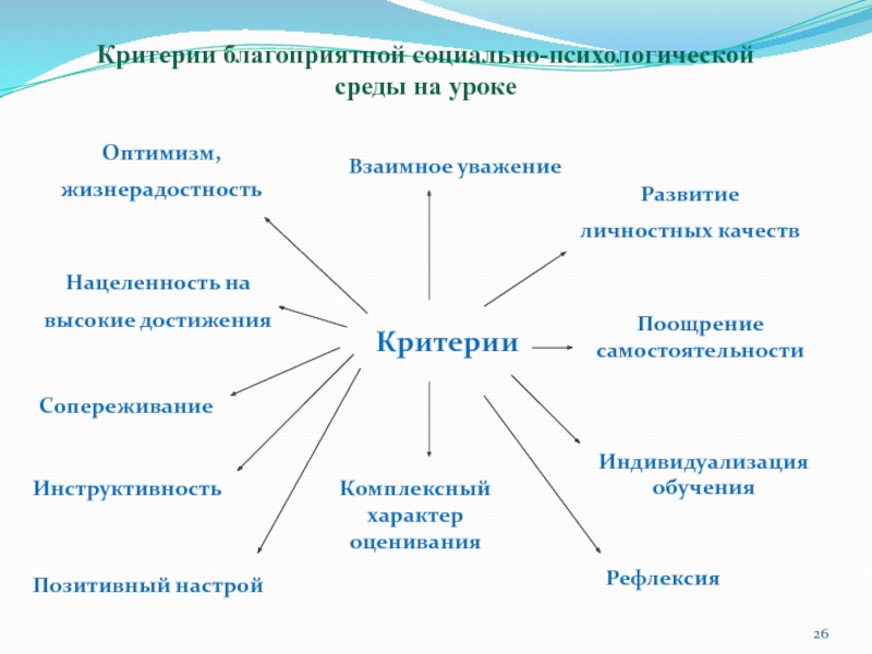 Слайд 26Критерии благоприятной социально-психологической
