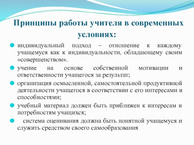Принципы работы учителя в современных условиях: