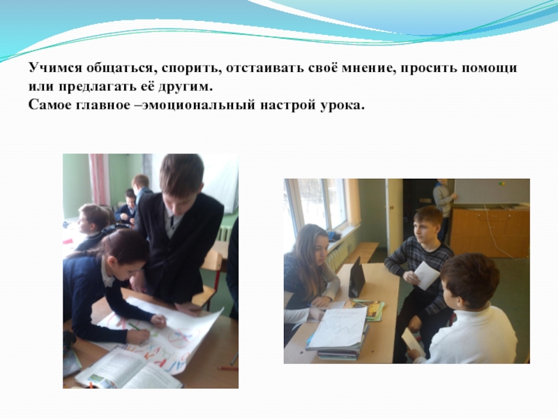Слайд 17Учимся общаться, спорить, отстаивать своё мнение, просить помощи или предлагать её